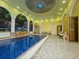1 этаж. Небольшой бассейн, зона отдыха, сауна, хаман, беседка и зона барбекю.