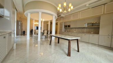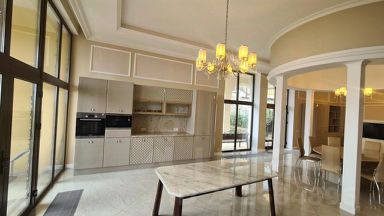 Площадь 18 соток. Большой бассейн с подогревом, зона отдыха,оборудована беседка с зоной барбюке, фруктовый сад, детская площадка. Установлены камеры видеонаблюдения, свой гараж на три автомобиля и комната охраны.