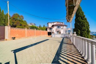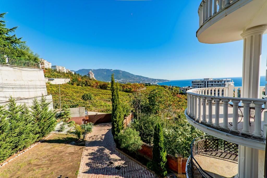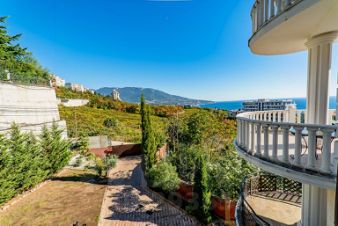 Территория земельного участка 10,43 сотки. Хорошо продумана. На закрытой территории: бассейн, теневая лаундж зона, видовая беседка, зона ВВQ, детская площадка, сауна, душевые, просторная терраса с видом на море и Ялтинскую бухту и парковка для авто. Удобный подъезд с основной дороги. На участке много различных, в том числе и плодоносящих деревьев, ярко цветущих многолетних южных кустарников.