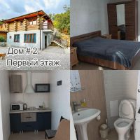 Дом 1: общей площадью 62.3 м.кв, состоит из двух этажей, первый этаж техническое помещение и кухня, второй этаж жилое помещение. Построено из бруса