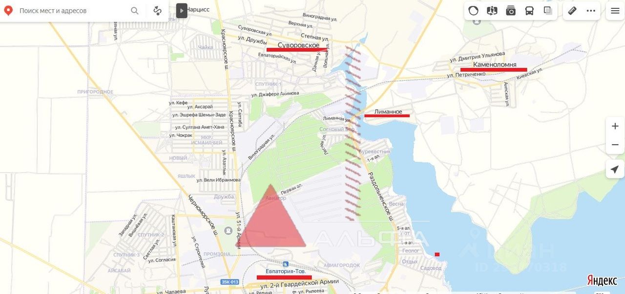 Расстояние до моря 8 км, до оз. Сиваш 500 м, до центра Евпатории 6км.