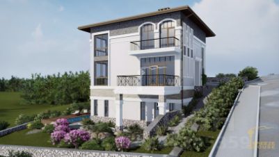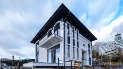 Продажа трехэтажного стильного дома с потрясающими видами на Черное море и горную вершину Ай-Петри на возвышающемся участке 6 соток в Кореизе.