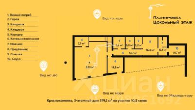 На цокольном этаже помещения под сауну и хамам, винный погреб, гараж на два автомобиля с автоматическими роллетами.
