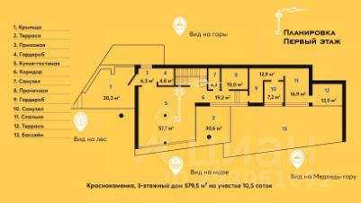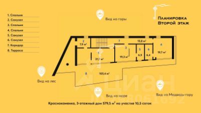 На втором этаже три спальни, каждая со своим санузлом и выходом на просторную террасу, на которой можно разместить обеденную зону и ротанговую мебель и наслаждаться великолепием крымской природы.