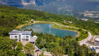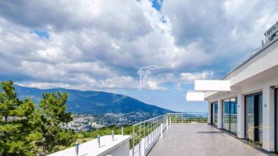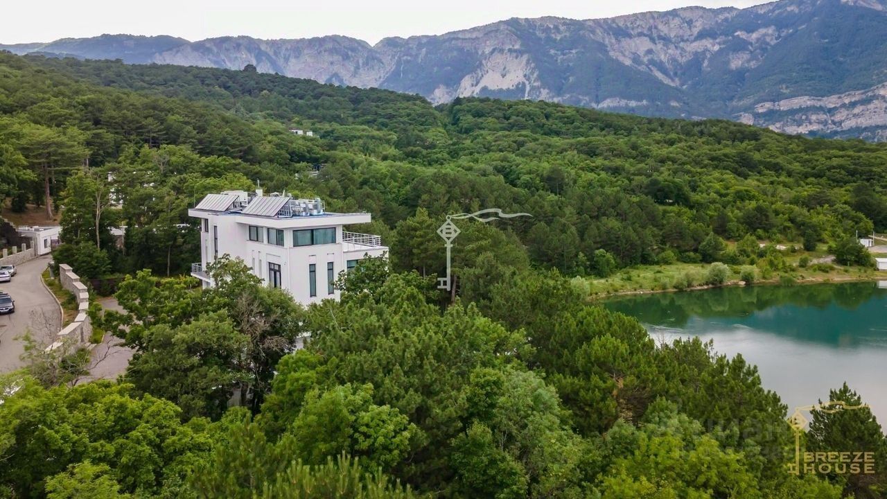 Предлагаем вашему вниманию 4-х этажный коттедж в стиле романтического модернизма, площадью 1236 м², расположенный на участке 36.18 соток на берегу горного озера у подножия горы Могаби в Ялте.