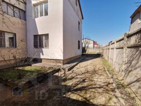 Внутридомовая территория частично выложена плиткой и высажены плодовые деревья .