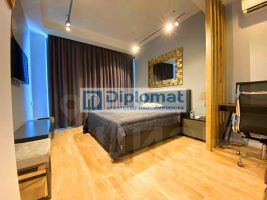 На первом этаже домовладения расположился: просторный гараж, технические помещения по жизнеобеспечению для бесперебойной работы дома. Отдельная квартира(гостевая) для персонала, оборудованная санузлом и кухней.Просторная прихожая, пульт управления охраны и домофон, оборудованная гардеробная комната.На втором этаже нашего великолепного объекта расположилась просторная кухня (с прилегающей темной комнатой)с обеденной зоной,оборудованная по последнему слову техники, и большая гостиная с замечательными дизайнерскими решениями и восхитительным, видом на морское побережье и отель Mriya Resort &Spa. Панорамные окна бельгийской фирмы Reynaresоборудованы системой управления шторами: открыть- закрыть шторы можно пультом управления, не покидая своего места нахождения. Гостиная полностью обставлена французской, американской и бельгийской мебелью, приобретенной в мебельных магазинах Grange и др. Гостевой санузел и просторная мастер-спальня (спальня-оборудованная гардеробной комнатой и шикарным санузлом-с теплым полом и теплой стеной, оборудованная современной сантехникой).