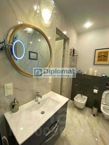 На третьем этаже расположилась мастер-спальня (спальня с гардеробной комнатой и современны санузлом-с теплым полом и теплой стеной, оборудованная современной сантехникой), гостевая спальня с гардеробом и уютная детская комната с милым ремонтом, стильный санузел. В комнатах, выходящих на юг также установлены панорамные окна бельгийской фирмы Reynares, оборудованные системой управления шторами.