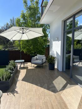 Дом расположен на участке 11 соток, ландшафтное озеленение и освещение, автоматический полив, Вольер для собаки, выведены коммуникации под мангальную зону и бассейн. Парковка под четыре автомобиля.