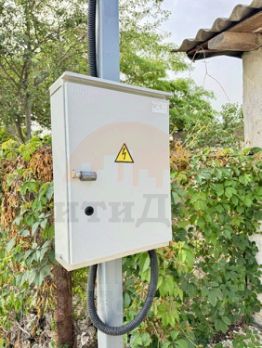 К участку подведены вода, электричество (3 фазы, 15 кВт) и газ.