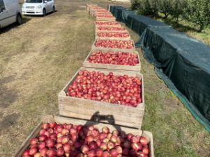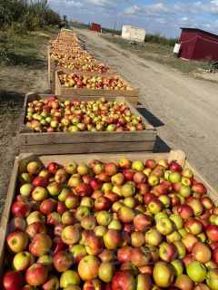 Голден , Симиренко, рэд чиф , Айдарэд , Криспин на подвое ММ106 и М9. На участке артезианская скважина глубиной 100м, эл/энергия, накопительный водоём на 1500 м3 , капельное орошение с фертигационными узлами на весь сад , станция смешивания , новое турецкое оборудование, домик охраны.