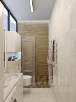 Также на этаже есть санузел с тропическим душем и стиральной машиной (Bosch). Во всех санузлах установлены смесители Boheme (Италия), раковины, подвесные унитазы Laufen (Швейцария), зеркала с подсветкой WasserKRAFT (Германия).