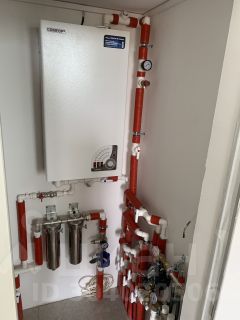 В подсобном помещении первого этажа оборудована бойлерная (1,86 кв.м.) с водонагревателем Drazice OKCE 200 NTR (Чехия), электрокотлом Эван Warmos Comfort 8 кВт, насосом Grundfos comfort (Дания), системой удаленного и погодозависимого управления. В мокрых зонах дома установлена система защиты от протечек.