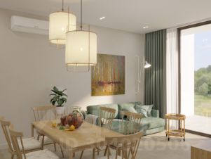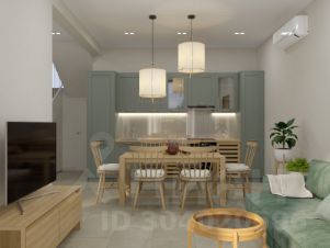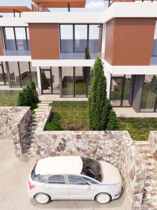 Новый дом 2024 года постройки, в доме никто не жил. В доме два этажа, кухня-гостиная, две спальни, два санузла, терасса. Монолитный сейсмо-устойчивый железобетонный каркас, звукоизоляция стен, высота потолков 3 м. Фасад дома облицован натуральным деревом. Таунхаус имеет панорамное остекление с мультифункциональными стеклопакетами из закаленного стекла. В доме выполнен дизайнерский ремонт. Пол первого этажа, лестница и санузлы облицованы керамогранитом. Теплые полы в прихожей и в санузлах. Установлены итальянские дизайнерские радиаторы водяного отопления (GUARDO PILON) и скрытые под полом конвекторы.
