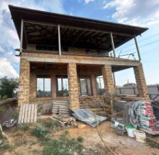 Двухэтажный дом, общей площадью 250 кв.м., который состоит из 6 комнат, кухни-гостиной, двух санузлов, гардеробной, котельной, коридоров и большой террасы на втором этаже.