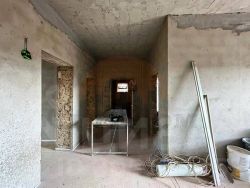 На первом этаже стены оштукатурены и подготовлены для разводки электрики, сделаны теплые полы. Окна панорамные.