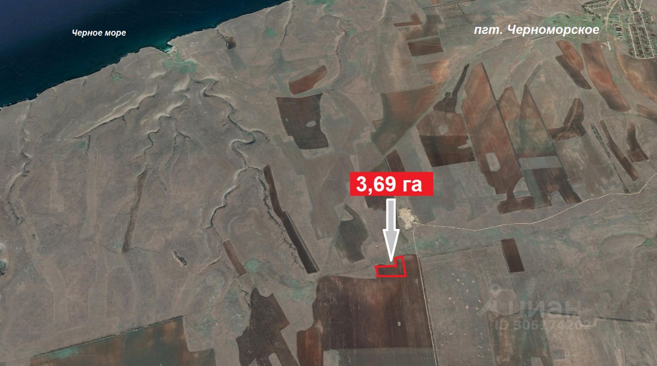 Продается земельный участок площадью 3,69 га. Участок относится к территории Оленевского сельского совета, находится между пгт. Черноморское и селом Оленевка. Назначение земли: сельскохозяйственное использование. Вдоль участка проходит грунтовая дорога. До моря (бухты Кипчак) 5 км. До пгт. Черноморское 5,2 км. До села Оленевка 9,7 км.