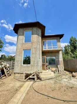 Продам двухэтажный готовый дом общей площадью 66.2 кв.м, жилое 37.6 кв.м, кухня 11.7 кв. м + недострой 120 кв. м на участке 5.06 сотки по улице Главная в СНТ "Строитель" города Саки, Крым.