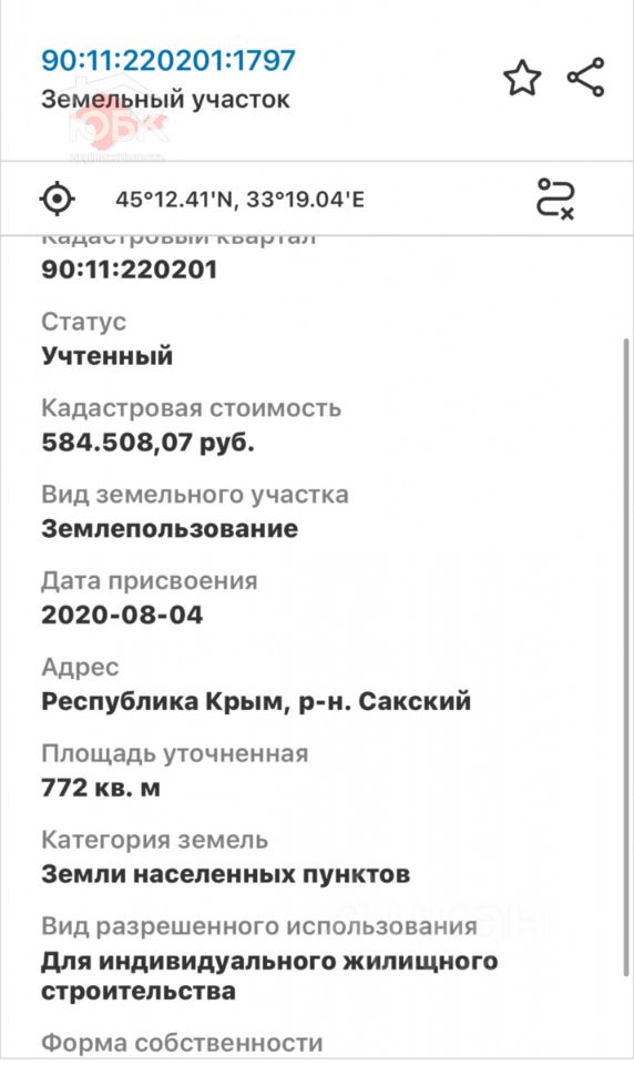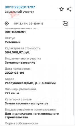 Земля приватизирована. Расстояние до моря 6км. Расстояние до центра города Евпатория 5 км. На данном этапе уже заключен и оплачен договор на подключение света, газ и вода в перспективе.