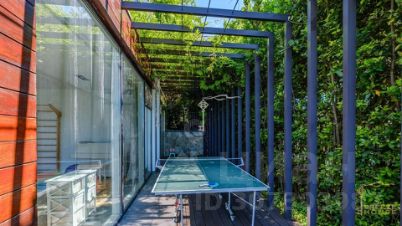 Через эксплуатируемую кровлю вход в дом для персонала с кухней и спальней. Этажом выше расположен гараж.
