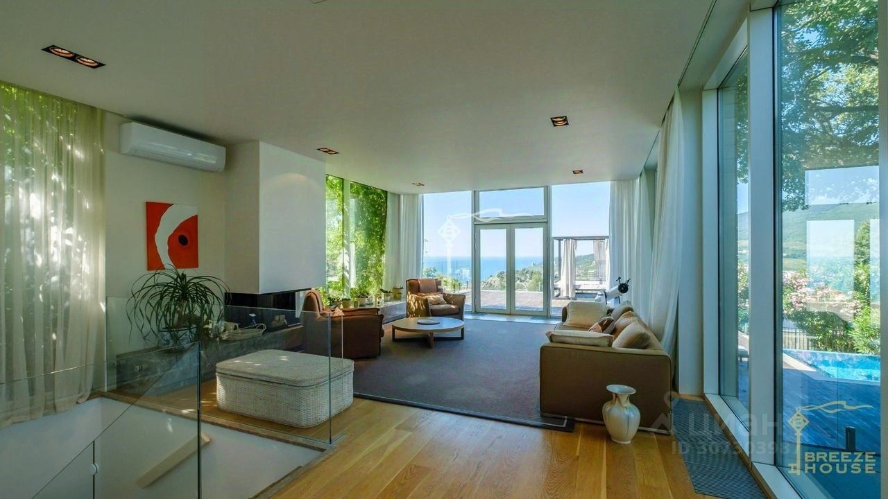 За уют лаконичного и светлого пространства отвечают теплые натуральные материалы, а за позитивные эмоции и краски панорамные окна с великолепным видом на Гурзуфскую бухту.