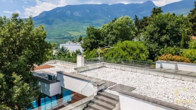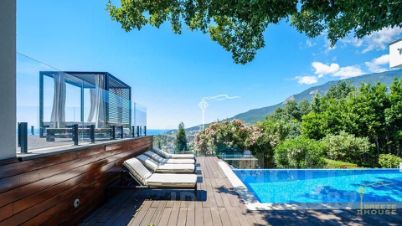 Предлагаем вашему вниманию виллу площадью 703 м² с бассейном, выдержанную в современной средиземноморской стилистике, расположенную в элитном коттеджном поселке "Вилла Роз" в Гурзуфе.