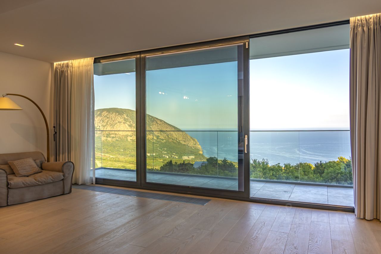 На втором этаже: просторный холл, 2 спальни с собственными гардеробными и ванными комнатами. Из каждой спальни есть выход на террасы с панорамным видом на море, гору Аю Даг, пгт. Гурзуф и детский лагерь Артек. Здесь море и солнце в каждом окне!