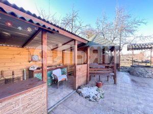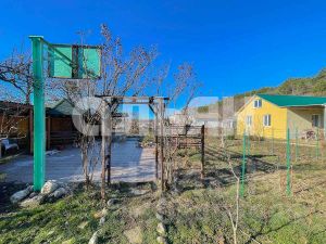 На участке: зона отдыха (беседка, летняя кухня, мангал),садовый уголок (для хранения инвентаря, цветочных горшков и т.п.), площадка с баскетбольным кольцом, садовый туалет, большой вольер для собаки, участок разработан, ухожен и засажен плодовыми и декоративными деревьями и кустарниками, разбиты клумбы и цветники.