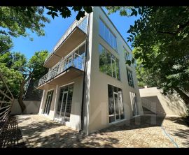 Выполнен из железобетонного монолитного каркаса, монолитные перекрытия 20 см, стены - газобетон толщиной 30 см, высота потолков 3,2, установлены панорамные стеклопластиковые окна Aluteсh, эксплуатируемая кровля, двор выложен брусчаткой, металлический забор по периметру участка, установлены роллетные ворота. Подведены все коммуникации: электричество 15 кВт, газ, вода, канализация центральные.