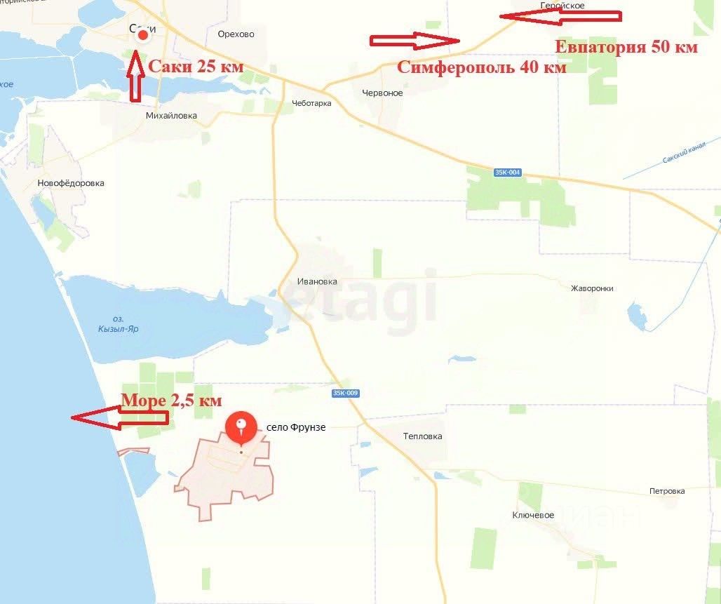 Продается дом в с.Фрунзе Сакского района, Крым общей площадью 108,2 кв.м., расположенном на участке размером 7 соток. Дом состоит из трех просторных комнат, кухни и коридора. Частично в комнатах установлены металлопластиковые окна, крыша перекрыта шифером. Санузел отсутствует,но в дом заведена вода на кухне, по этому проблем с обустройством удобств нет. Подключены все необходимые коммуникации - газ, электричество, централизованное водоснабжение и водоотведение. Во дворе много хоз. построек, летняя кухня, гараж на два автомобиля с ямой, погреб для хранения заготовок. В шаговой доступности магазины, детский сад, школа, амбулатория,церковь, дворец культуры, спорт комплекс, стадион с современной спортивной площадкой, музыкальная школа. Рядом остановки общественного транспорта, с поселка ходят рейсовые автобусы в г. Саки, Симферополь и Евпаторию. Расстояние к морю 3 км, к г. Саки 18 км Доп. описание: отопление: центральное, канализация: центральная, также имеются: интернет, телевидение, погреб