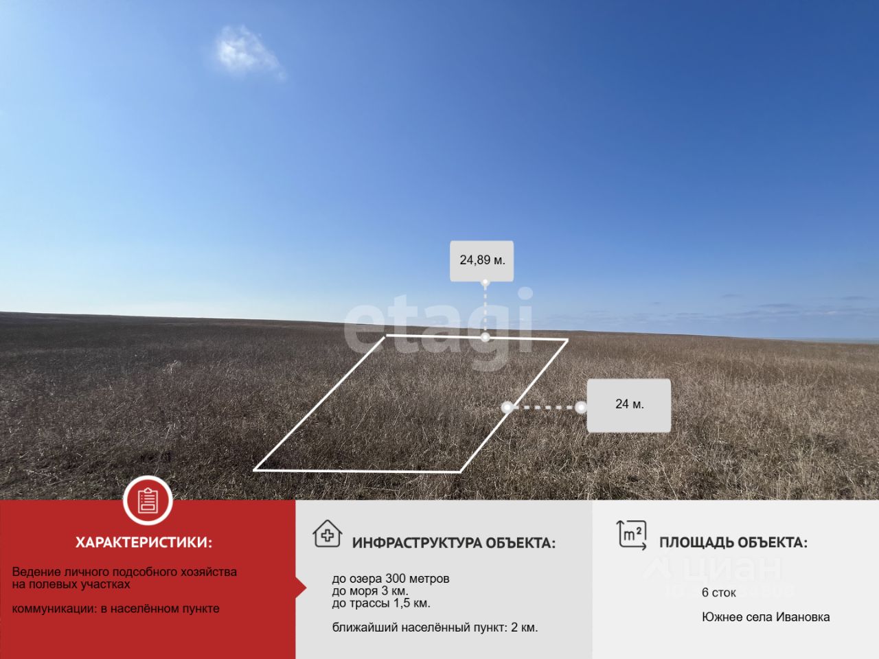 В пешей доступности трасса, остановка общественного транспорта, заправка, а также село Ивановка в котором есть школа, детский сад, магазины.