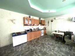 На берегу Черного моря у самых лучших пляжей продается добротный основательный дом, построенный из камня и кирпича на 8 сотках. Дом 3х этажный. На первом этаже расположены большой гараж, котельня, кладовки, жилая комната, есть здесь еще 2 комнаты, которые нужно до ума довести и сдавать. На втором этаже из прихожей уходят в разные стороны двери: в большую ( 43 кв. м.) кухню, в раздельный санузел, в две спальни и большой зал. На третьем этаже расположены еще 4 комнаты. При желании можно их сдавать. Коммуникации: электричество ( 380 ), централизованная вода, выгребная яма, газ, интернет. Отопление: твердотопливное и газовый котел, бойлер. Огород обрабатывается, в нем растут и плодоносят разные фруктовые деревья и виноград, Двор асфальтирован, здесь растут цветы и виноград. До моря 900 метров, пешим ходом минут 10--12. Вся обстановка, кроме холодильников, микроволновки и стиральной машинки, остается.
