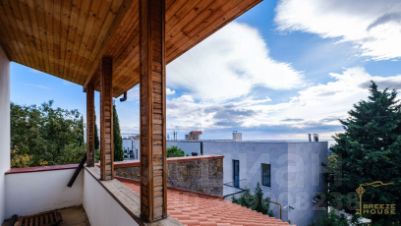 На втором этаже расположена уютная кухня-столовая с выходом во внутренний двор, где можно насладиться трапезами на свежем воздухе. Гостевая спальня, просторная гостиная с выходом на большую террасу с захватывающим видом на горы и море и санузел.