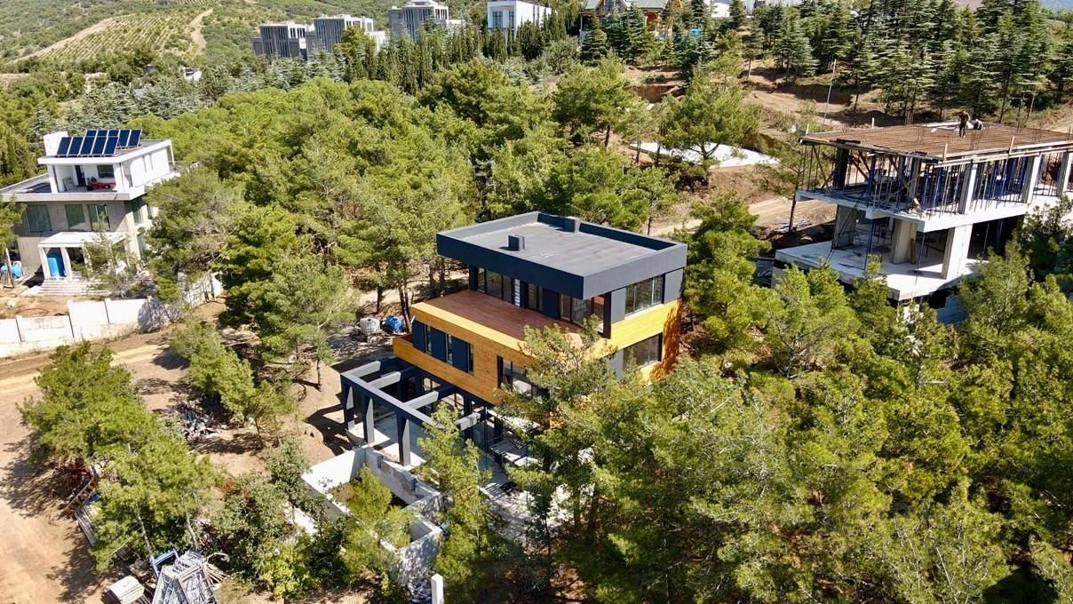 На первом: кухня-гостиная, гостевая спальня, гостевой с/у гардеробная, котельная.На втором уровне:три спальни, три с/у. Также на территории коттеджа находится бассейн и зоны для отдыха.На третьем уровне: находятся две спальни, с/у, просторная открытая терраса с прекрасным видом на море и горную панораму.