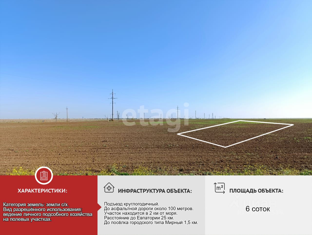 Участок правильной прямоугольной формы, подойдёт для некапитального строения, под дачу, для хозяйственной деятельности. Категория земель: земли сельскохозяйственного назначения. Вид разрешённого использования: ведение личного подсобного хозяйства на полевых участках.