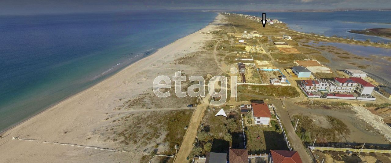 Земельный участок расположен на песчаной косе между озером Донузлав и Черным морем с чистейшим белым песком.