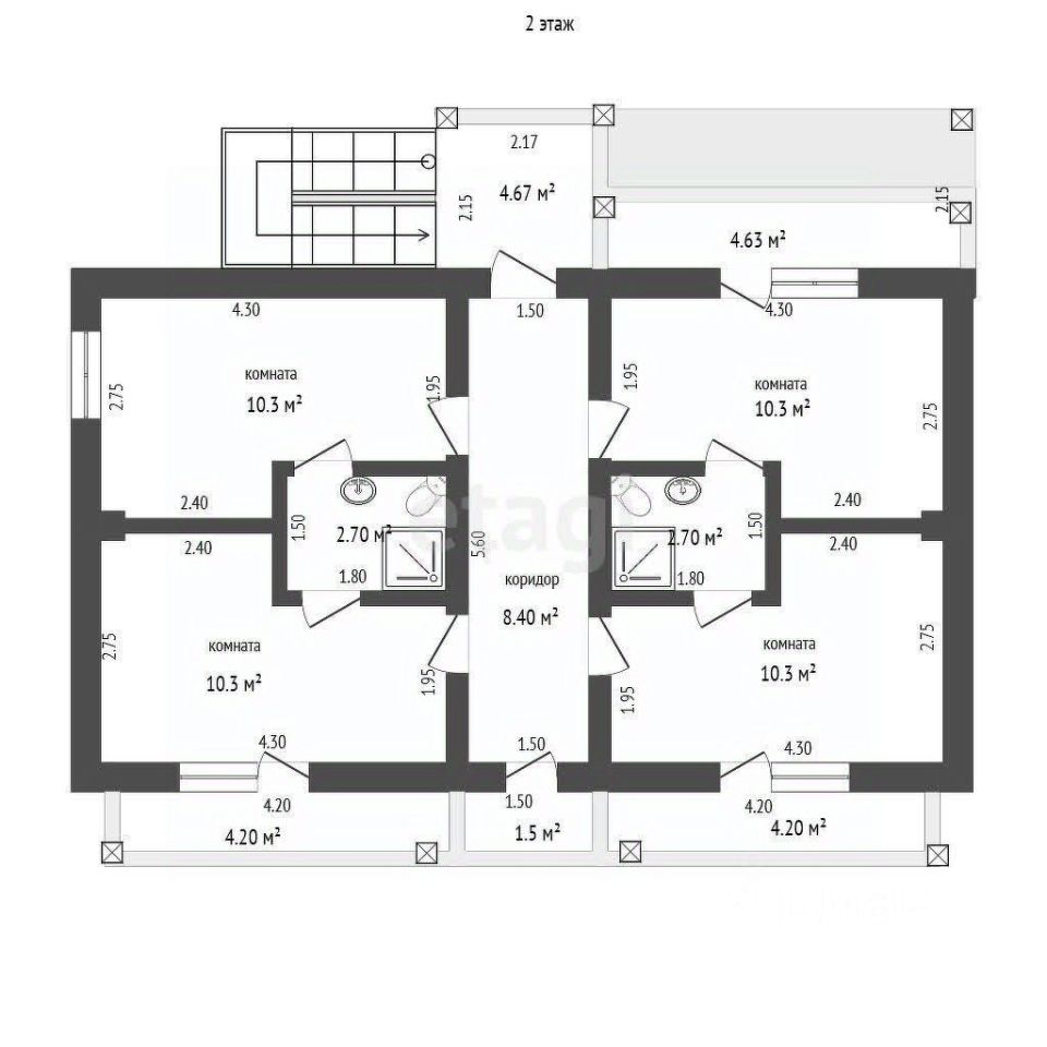 Снаружи дом отделан полностью, кроме балконных ограждений. Крыша метало-черепица. Высокий железобетонный фундамент, стены из ракушки в камень. Цокольный и первый этаж перекрыт железобетонными плитами. Цоколь снаружи облицован плиткой. . В санузлах облицованы стены, полы - плиткой и потолки сделаны. Внутри сделано все под отделку. Штукатурка, шпаклёвка стен, стяжка на полах. На втором этаже потолки зашпаклеваны.