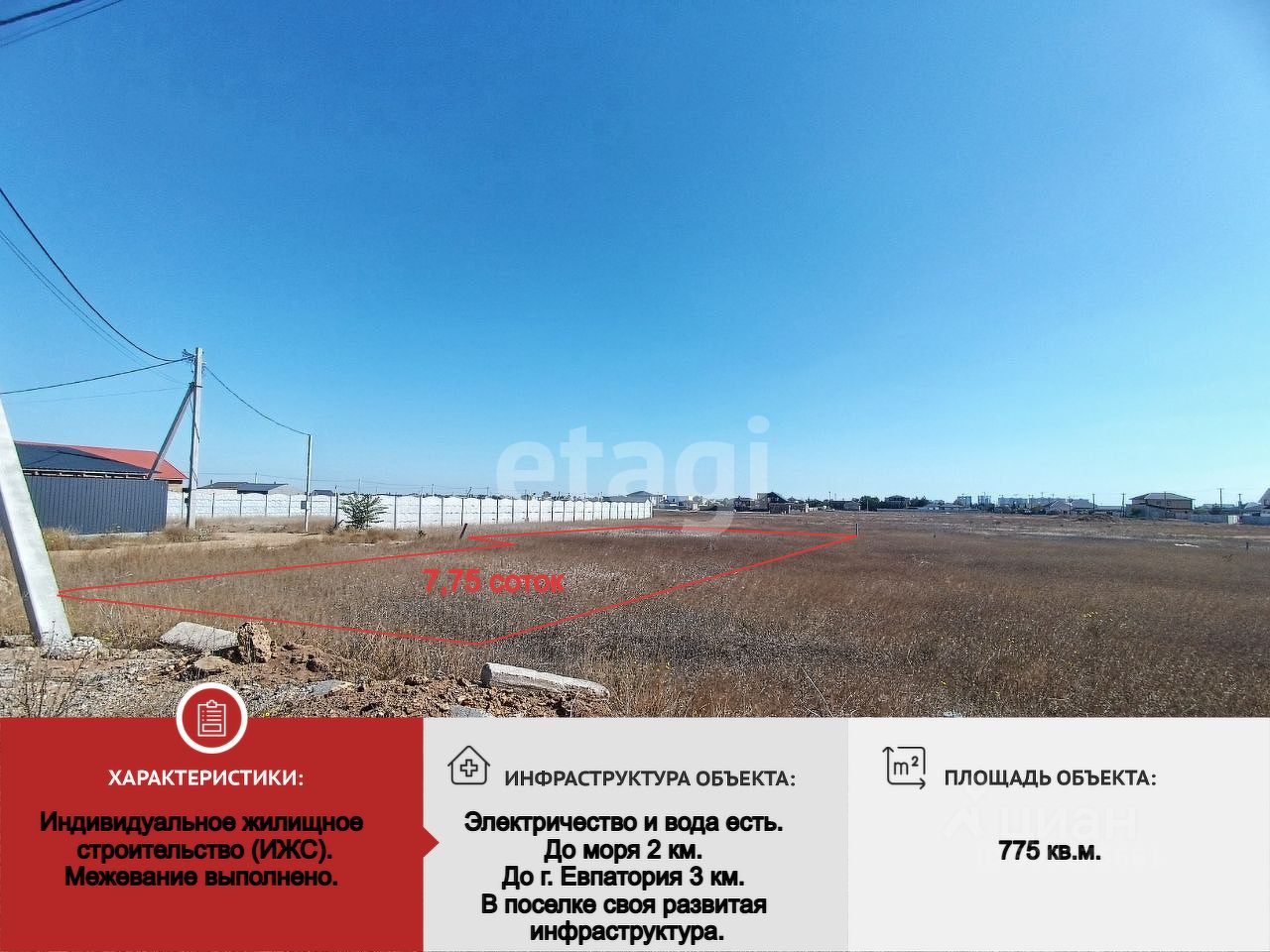 Продается участок ИЖС 7.75 сотки в селе Уютном сакского района.