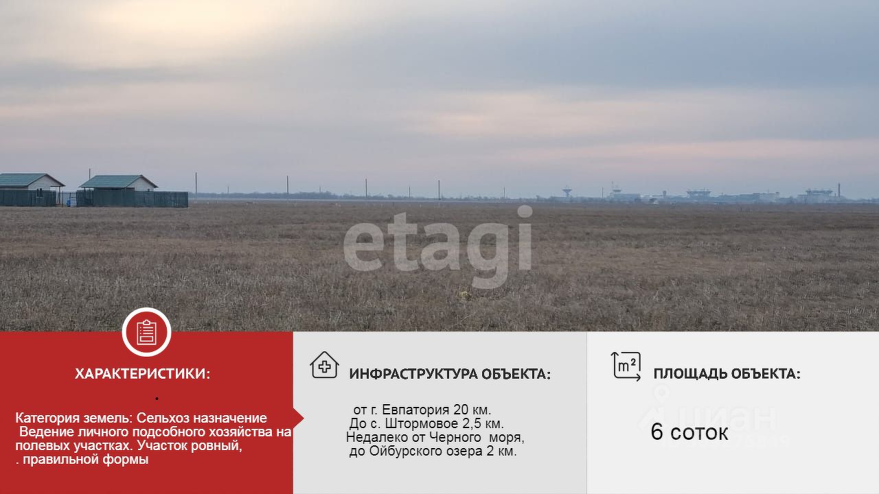 Недалеко от Черного оря! Море в этих местах входит в ТОП мест Крыма с самой чистой и прозрачной водой и белоснежным песком!!! до Ойбурского озера 2 км. Озеро Ойбурское - это "МЁРТВОЕ МОРЕ" Крыма С ЦЕЛЕБНЫМИ ЧЁРНЫМИ И ГОЛУБЫМИ ГРЯЗЯМИ !!! От г. Евпатория 20 км., до с. Штормовое 2,5 км. Самое выгодное предложение в данном массиве. Звоните пишите все расскажу и подскажу. Отличный вид на море и лечебное озеро!