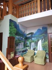 кабинкой,биде,умывальником и унитазом. В коридоре окна витражные, высотой 7