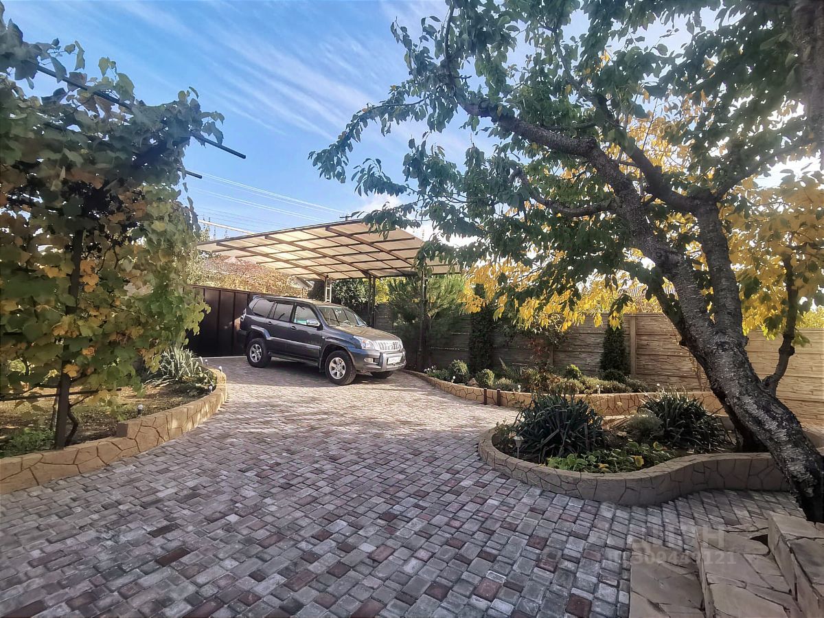 Двор-тротуарная плитка. Консольный автонавес из поликарбоната на 26 кв.м. Во дворе помещается до четырех авто, зона барбекю, виноградная беседка, фруктовые деревья. Ландшафтное озеленение двора.