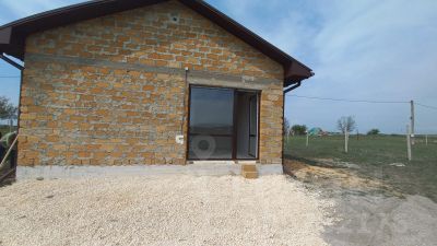 Окна двухкамерные стеклопакеты с ламинацией , внутри белые ,снаружи золотой дуб, крыша двускатная металлочерепица, входные двери с коробкой утеплены базальтовой плитой. Стены оштукатурены под обои либо покраску. Полы стяжка.