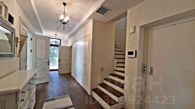 Двухэтажный белоснежный дом в средиземноморском стиле, спроектированный по индивидуальному авторскому проекту, имеет общую площадью 450 кв.м.