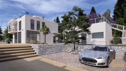 Продажа двух современных домов в стиле хай-тек общей площадью 265 м² с панорамным остеклением в пол, расположенных на участке 7 соток с баней и бассейном в живописной части Южного берега Крыма, поселке Краснокаменка.