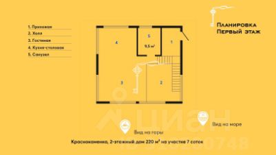 Панорамные окна и просторная террасы обеспечивают невероятный вид на море и окружающую природу. Высота потолков первого этажа — 3,2 метра, второй свет — 6,2 метров, второй этаж — 3,5 метра.