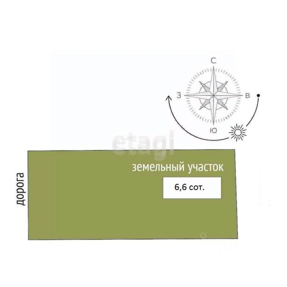 Участок ровный, прямоугольной формы площадью 6,6 соток.