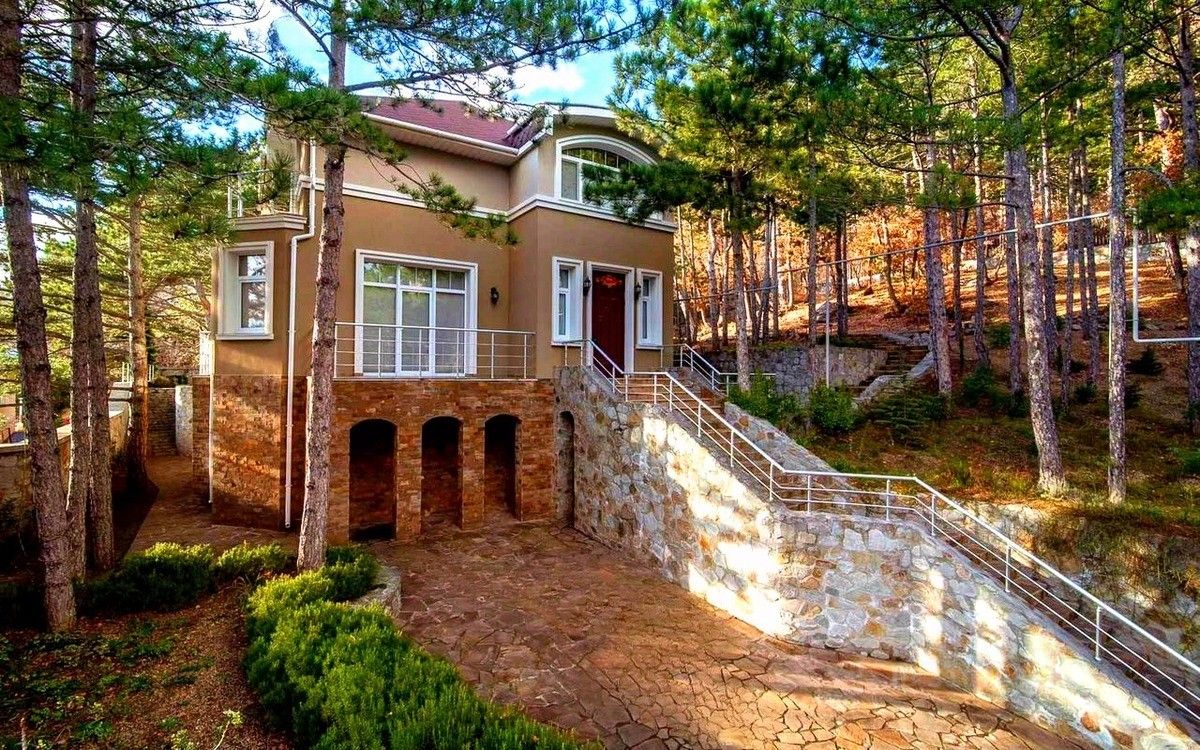 КОД 540520 Трехэтажный особняк, площадью 265,5 м2, с финской сауной, небольшим крытым бассейном и открытым баcсейном с подогревом, зоной барбeкю и бeceдкoй в сосновом лесу, на участке 20 соток, на закpытой тeppитopии. Учacток дома граничит c гоpно-лecным природным зaповeдникoм, на высоте 320 метров над уровнем мopя, и находится между Массандрой и Никитским ботаническим садом, в восьми километрах от центра Ялты. Недалеко от дома парк и Массандровский дворец Александра III; за домом, - выход в заповедник, ресторан Modus, бутик-отель Pallasa со спа-центром. Прохлада соснового леса, близость заповедника и морской бриз создают неповторимые условия для оздоровления в субтропическом климате, благотворно влияющие на бронхо-легочную систему и иммунитет человека. Удобная транспортная развязка позволяет быстро добраться на авто до пляжей и спа-центров, (несколько на выбор: "Сон у моря" Никита, санатория "Ай-Даниль", Рипарио и гостиницы "Ялта-Интурист") и до центра Ялты. Дом подходит для комфортного проживания кругдый год имеет систему фильтрации воды, газовое отопление и кондиционеры, дизайн интерьера выполнен по авторскому проекту, мебель из массива. Спальни в доме, с выходами на открытые балконы, откуда открывается великолепный вид на море, горы и лес. РАЗМЕЩЕНИЕ Первый этаж (цокольный): комната отдыха, гостевой санузел, финская сауна с небольшим крытым бассейном, техническое помещение (бойлерная, прачечная и др.) . Второй этаж кухня-столовая с камином и выходом к открытому бассейну с подогревом, гостиная с кожаной мебелью из массива, большой TV. Третий этаж -три спальни с двуспальными кроватями, с отдельными ванными комнатами и выходами на открытые балконы с видом на море и горы. ИНФРАСТРУКТУРА Финская сауна с небольшим крытым бассейном Открытый бассейн с подогревом Мангальная зона с беседкой Видео-наблюдение по периметру участка Участок 20 соток Выход в заповедник Парковка на две машины РАССТОЯНИЕ до моря 6,5 км, 9 минут езды на авто до набережной Ялты 8 км, 12 минут езды на авто до выхода в лес 2 метра Характеристики дома: Количество комнат: 6 Площадь дома: 265,5м2 Площадь участка: 20 соток Этажей в доме: 3 Для отдыха: финская сауна с крытым бассейном, Открытый бассейн с подогревом Категория земель: индивидуальное жилищное строительство (ИЖС) Коммуникации централизованные: газ, электричество, канализация; индивидуальное отопление (газовые котлы) Санузел: в доме Ремонт: авторский Wi-fi, TV Транспортная доступность: асфальтированная дорога, остановка общественного транспорта Инфраструктура: магазин, аптека, детский сад. школа, ресторан, спа-центр До набережной Ялты 8 км, 12 минут езды на авто Номер объекта: #1/540520/17790