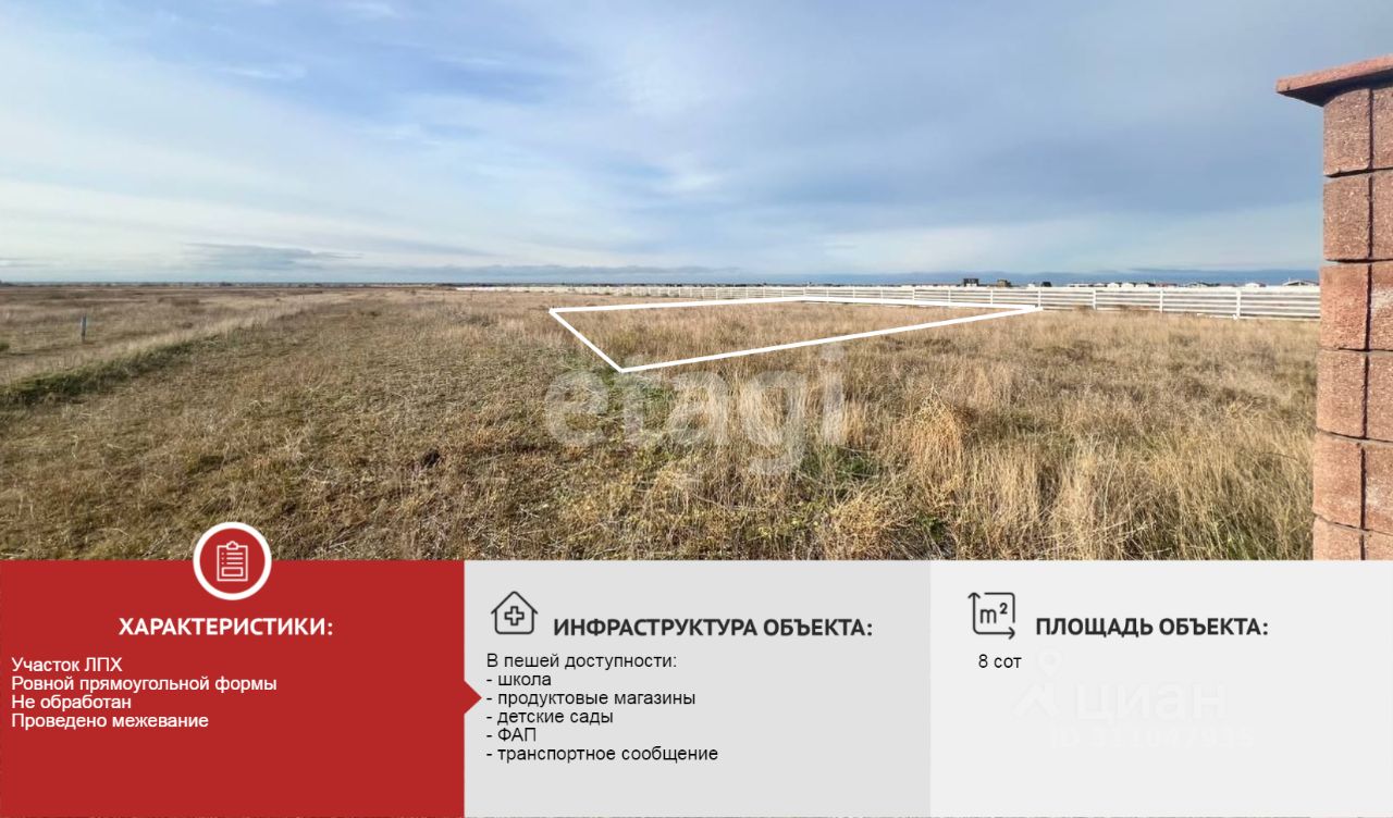 Продаётся шикарный участок 8 соток в Штормовском сельском поселении, село Хуторок.