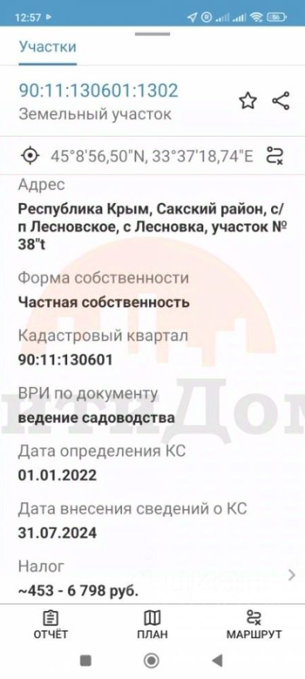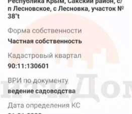 Участок имеет хорошее месторасположение, до города Саки 2 км., до моря 7 км.