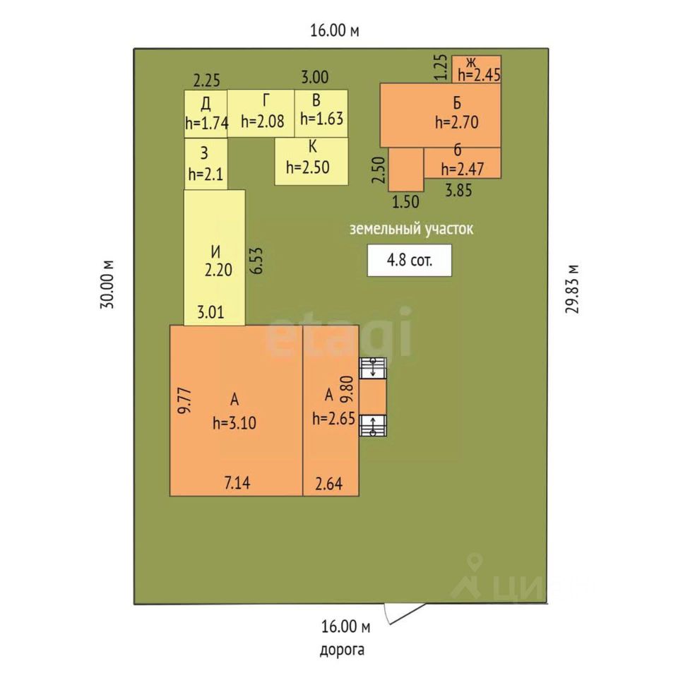 На участке имеются хозяйственные постройки и летняя кухня.